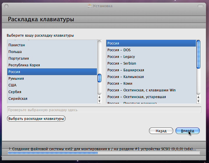 Ну вот основную работу мы сделали, и пока система устанавливается нам остались чистые формальности… выбрать часовой пояс, определиться с клавой, ввести имя и пароль…
