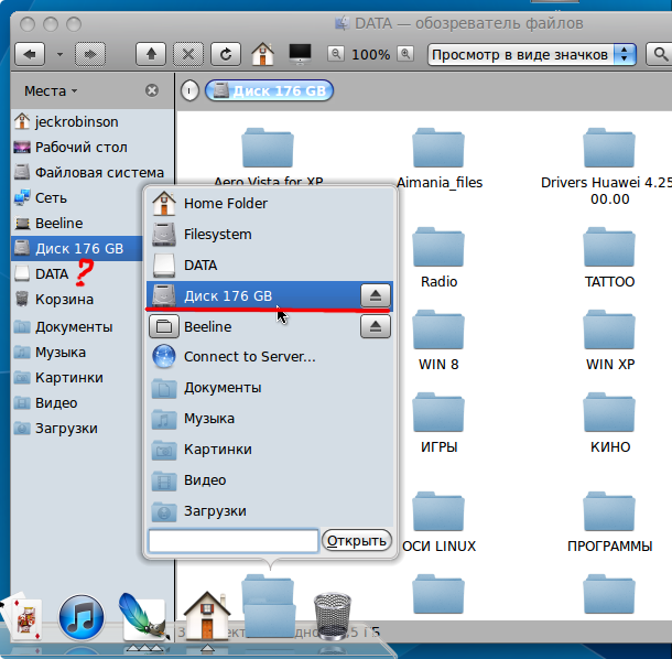 Сохраняем запись, перезагружаемся и получаем автоматически подключённый NTFS диск.